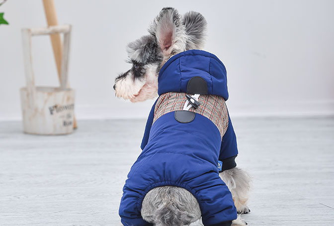 GA20048 Plush dog coat, hooded design, 4 leg holes, 3 buttons to secure the coat, flannel lining, great to keep your dog warm and dry during the cold winter months.